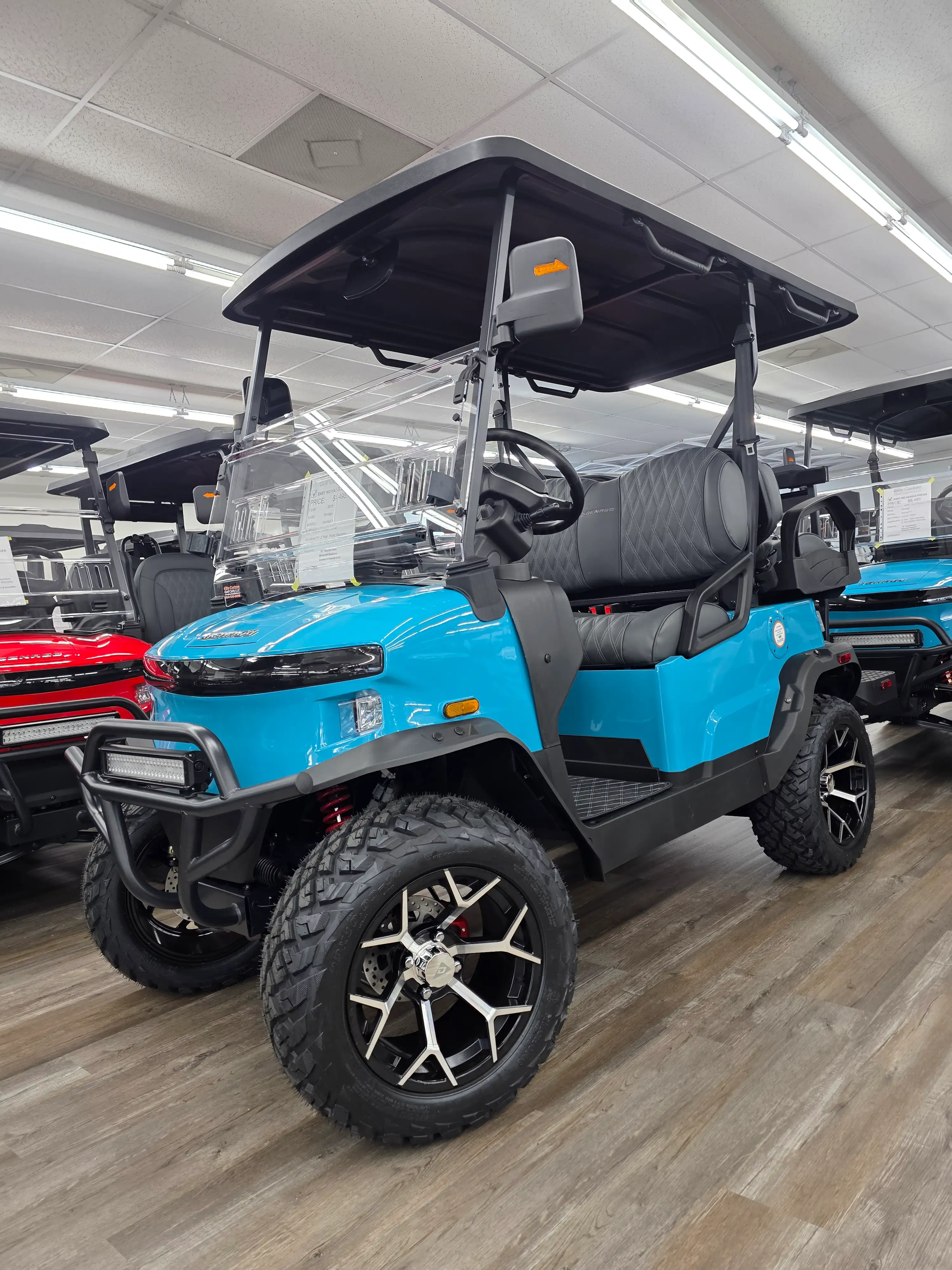 The 2026 Denago EV Nomad XL blends robust performance with modern efficiency, featuring a 5 kW AC motor paired with a 51.2V 105Ah LiFePO4 battery for up to 40 miles of quiet, emissions-free cruising. Its powder-coated aluminum chassis and 23-inch all-terrain tires provide stability and durability across diverse terrains.