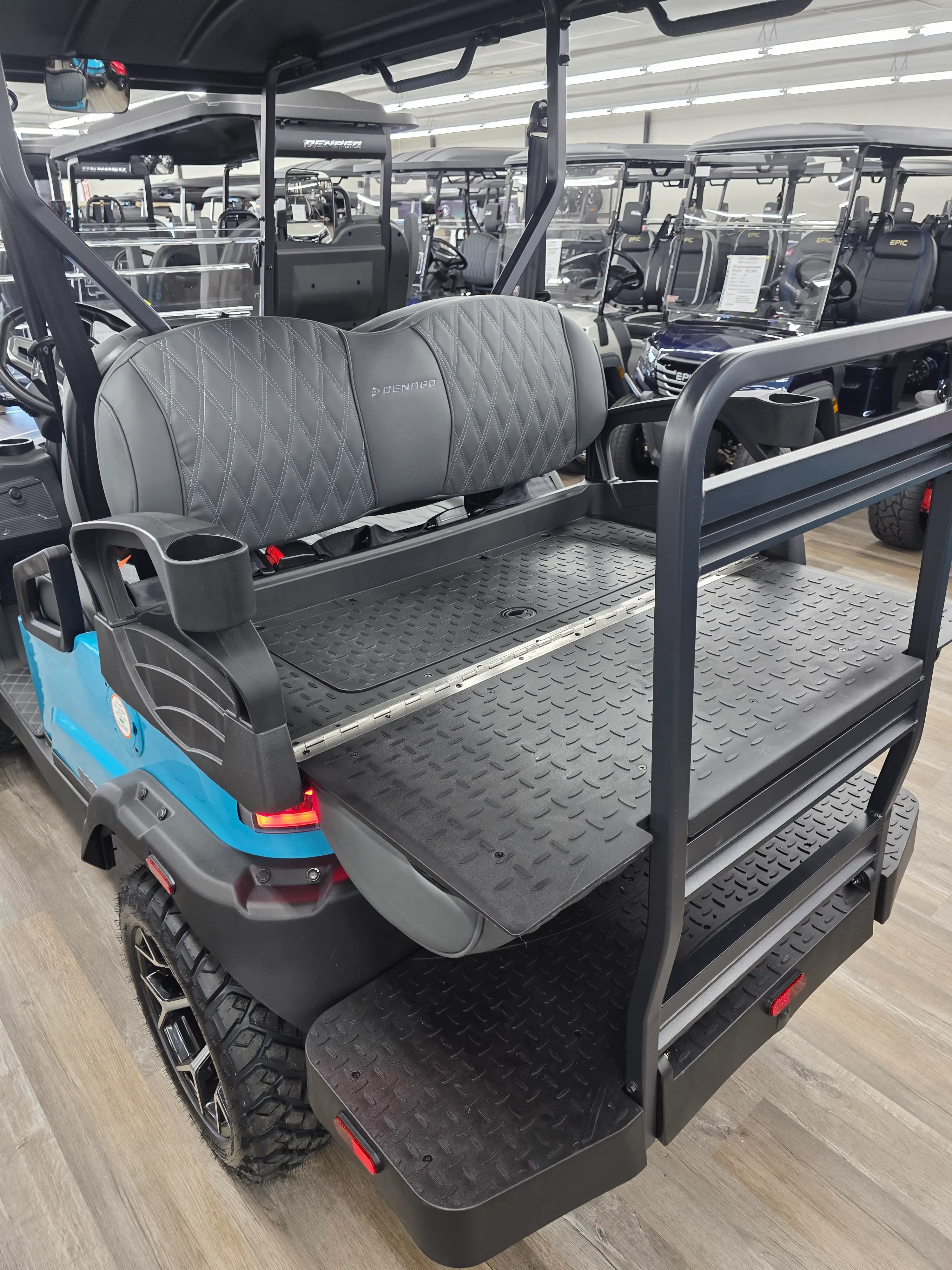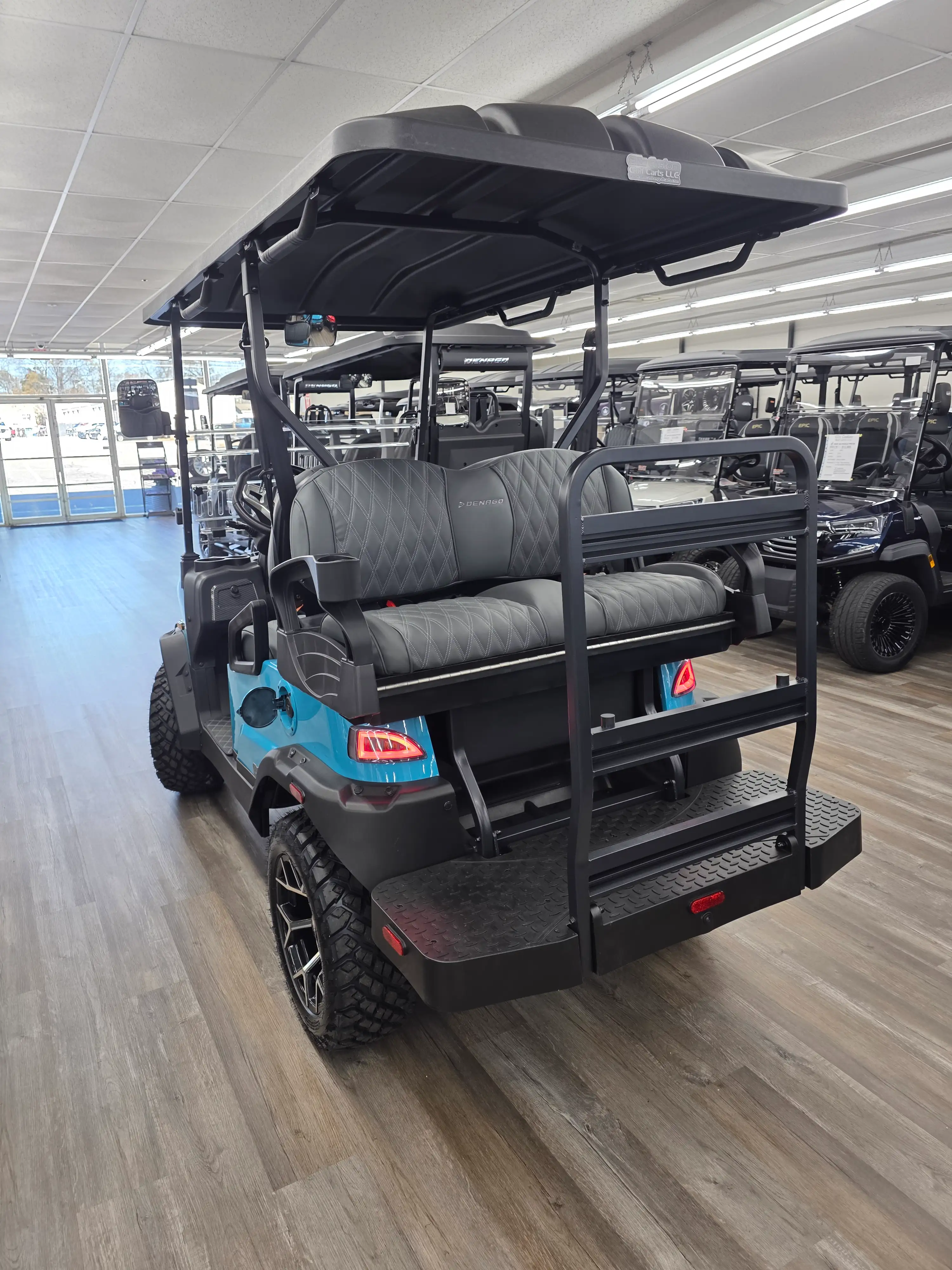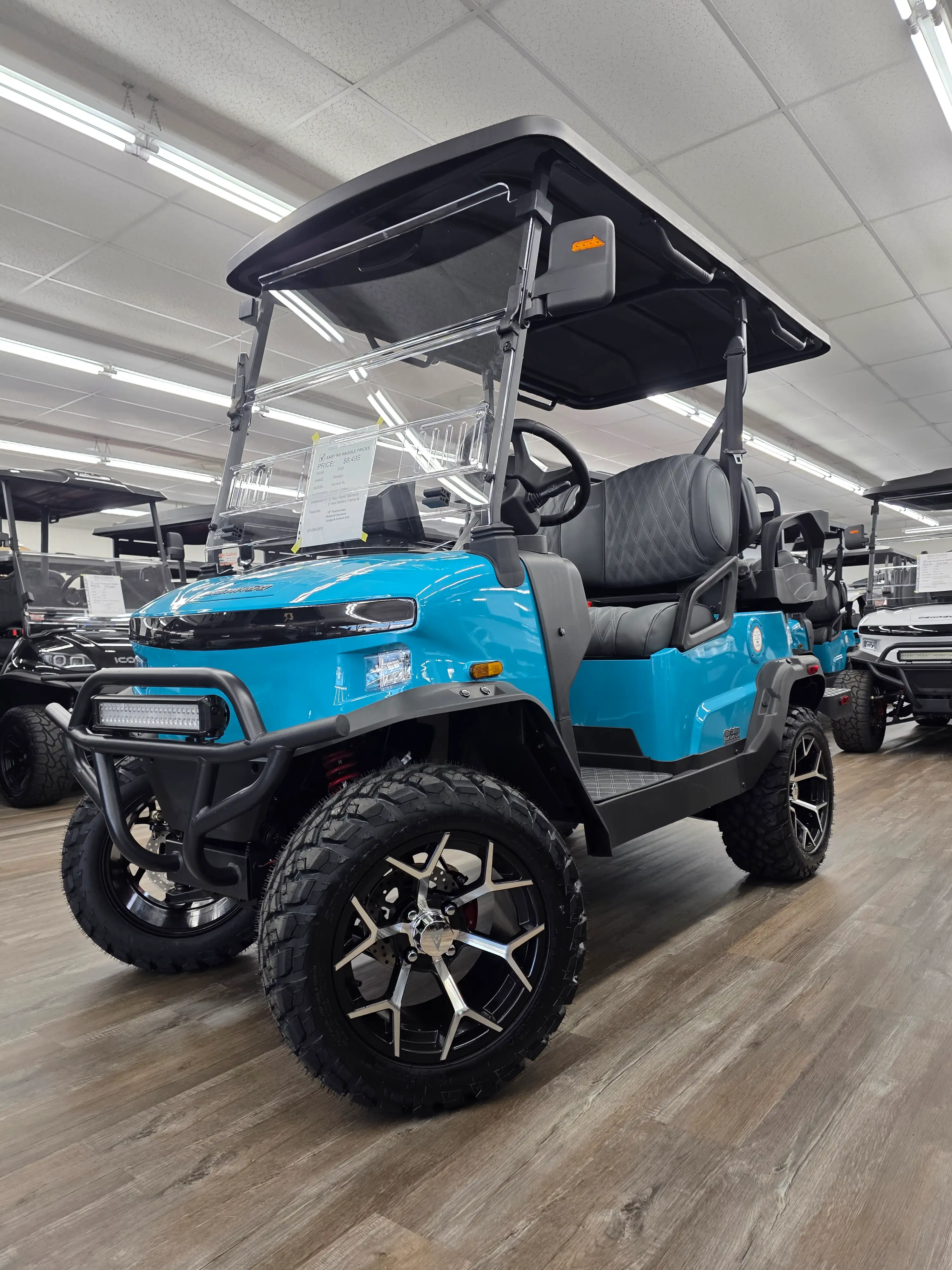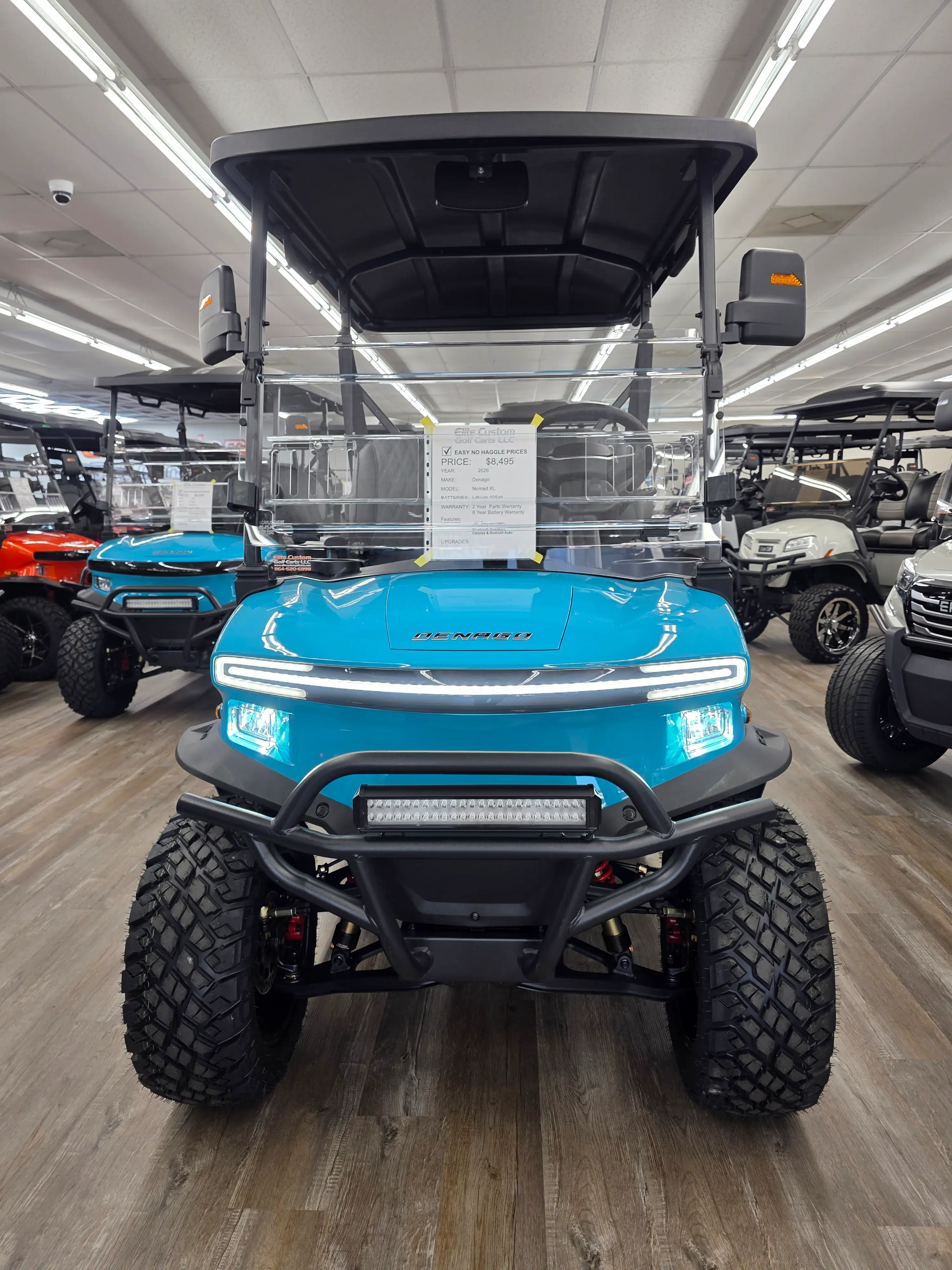The 2026 Denago EV Nomad XL blends robust performance with modern efficiency, featuring a 5 kW AC motor paired with a 51.2V 105Ah LiFePO4 battery for up to 40 miles of quiet, emissions-free cruising. Its powder-coated aluminum chassis and 23-inch all-terrain tires provide stability and durability across diverse terrains.