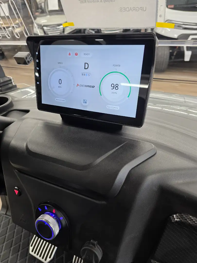 The 2026 Denago EV Nomad XL blends robust performance with modern efficiency, featuring a 5 kW AC motor paired with a 51.2V 105Ah LiFePO4 battery for up to 40 miles of quiet, emissions-free cruising. Its powder-coated aluminum chassis and 23-inch all-terrain tires provide stability and durability across diverse terrains.