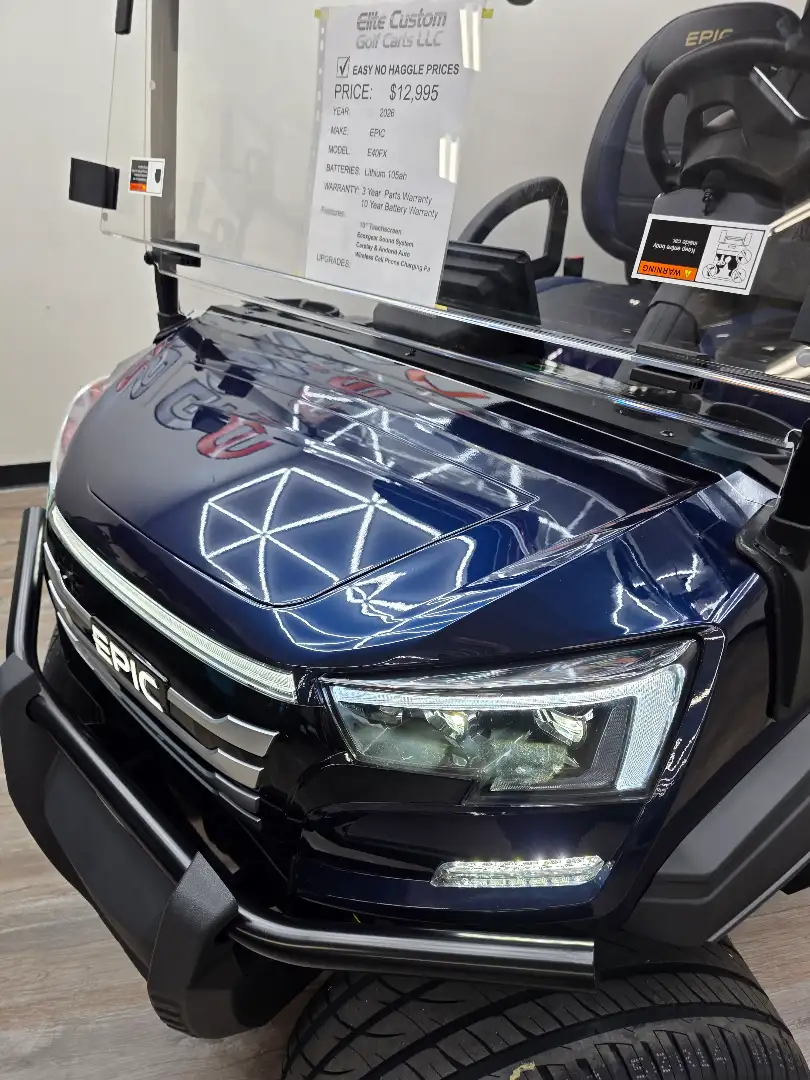 The 2026 Epic E40FX offers exceptional range and a robust motor solution, perfect for golf enthusiasts.
